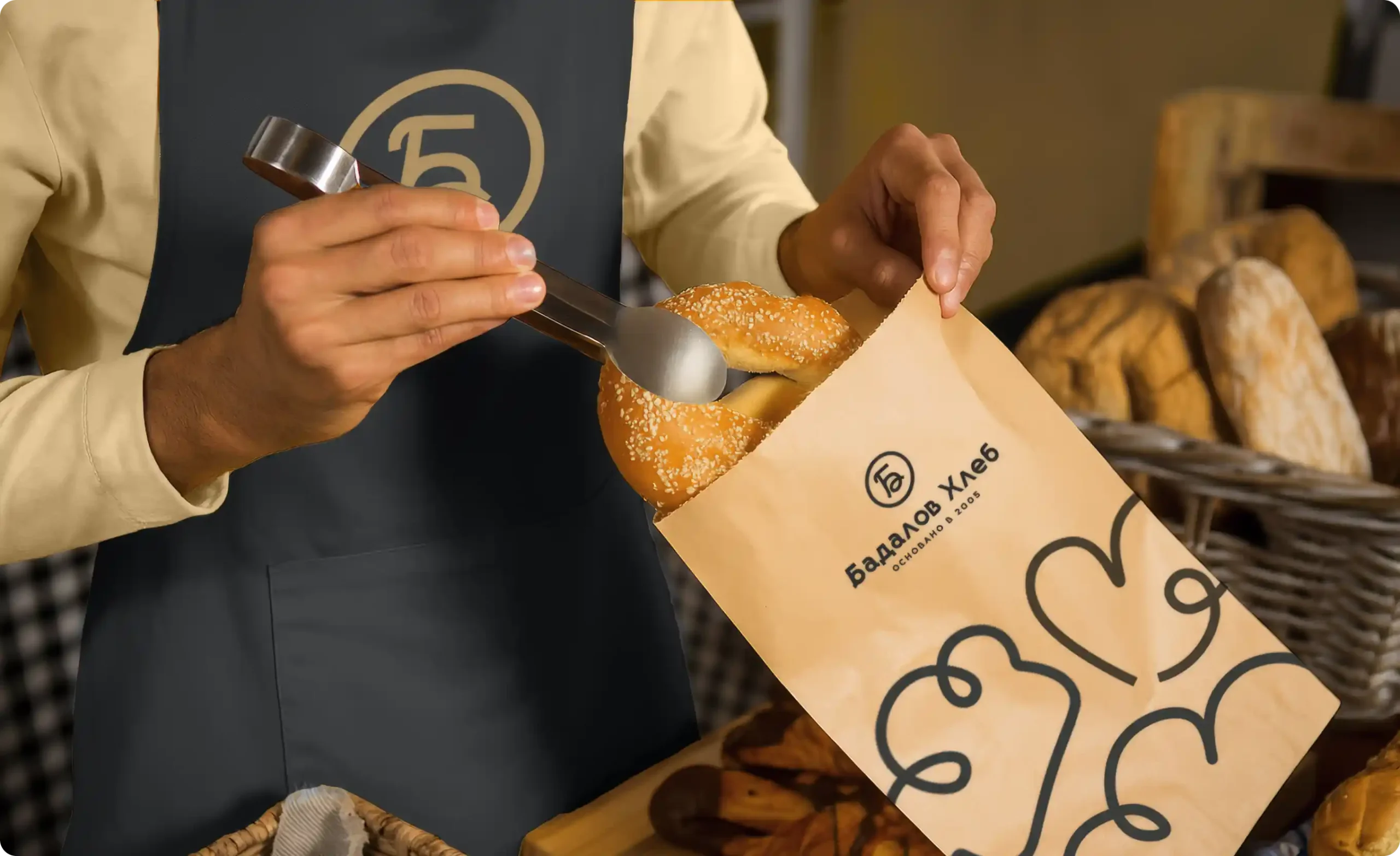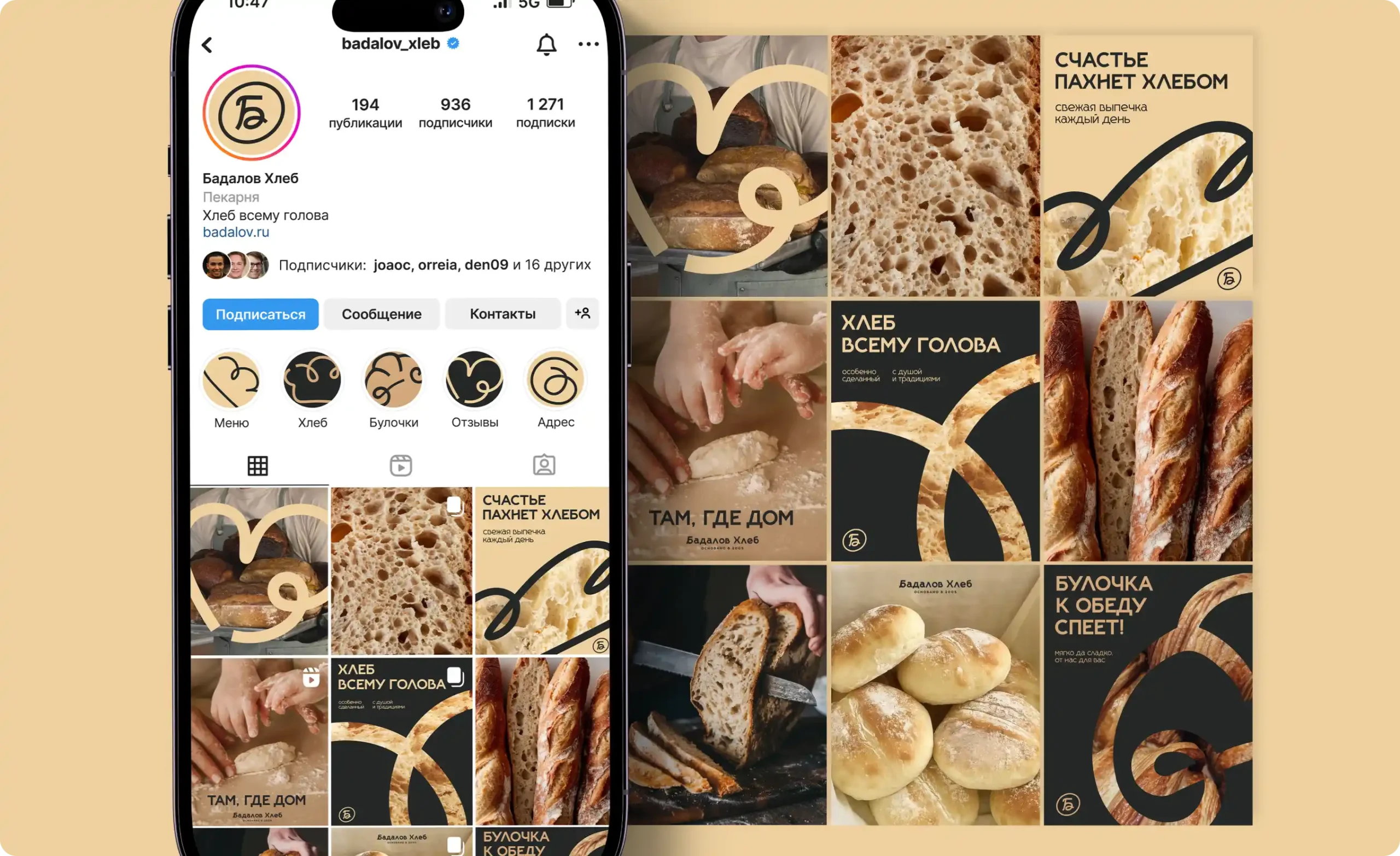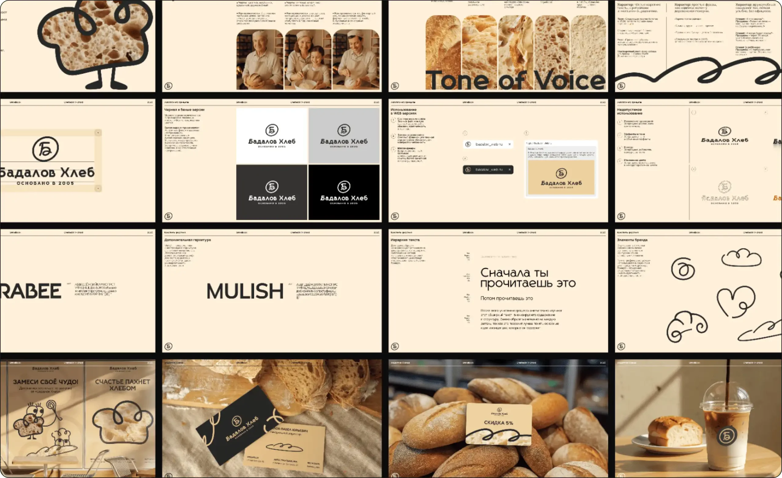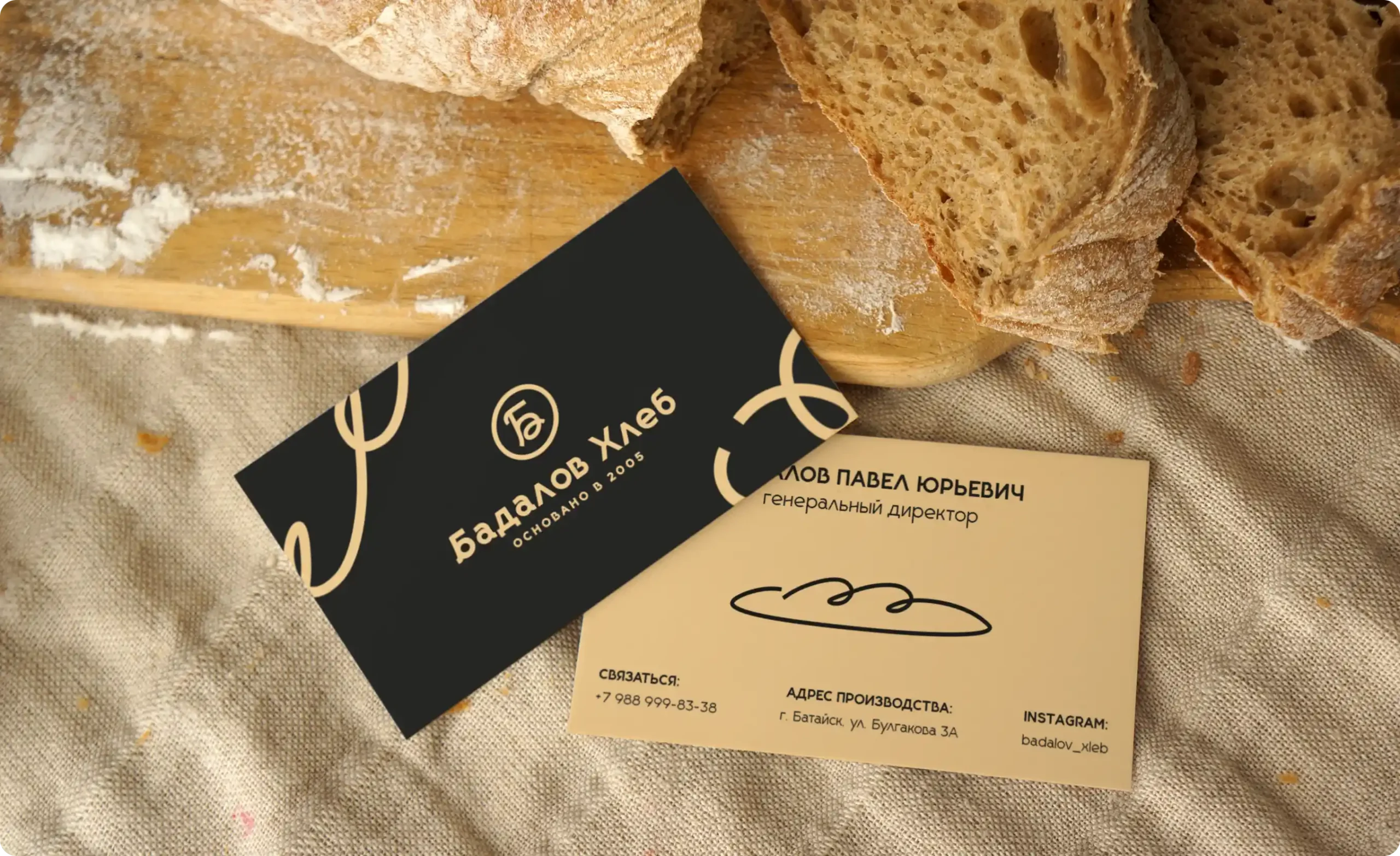 Название «Бадалов Хлеб» закреплено как основа доверия — фамильный бренд, который воспринимается как «свой».